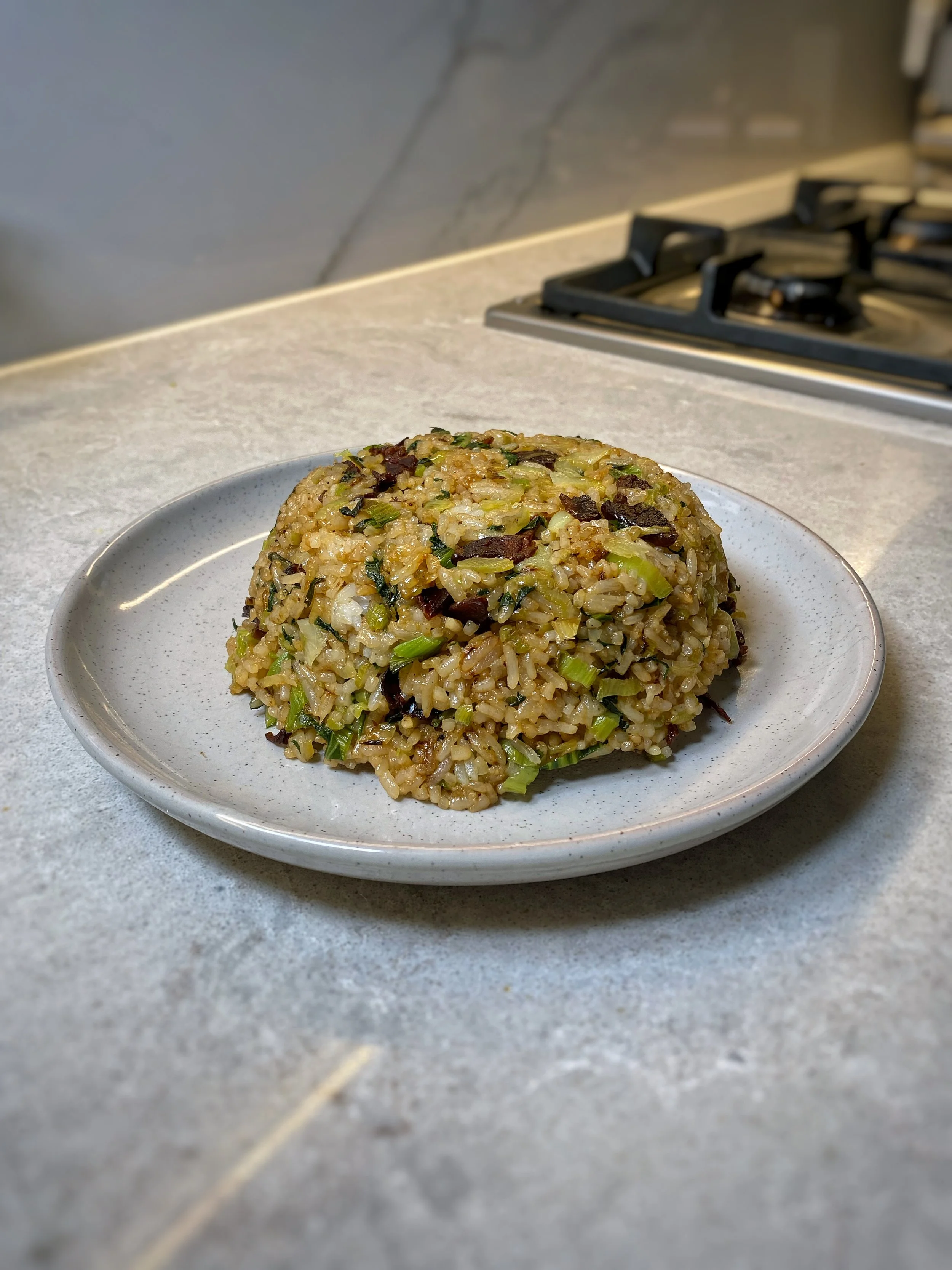 Growing up, this dish was a weeknight regular on the dining table. It doesn’t require many ingredients, it’s a great way to use up bok choy and it comes together in 15 minutes. This stir-fried bok choy rice is my mum’s spin on cai fan (rice with salted pork and greens) which is a Shanghainese comfort dish that normally comes together in a clay pot. This is essentially the stir-fry version of that dish.